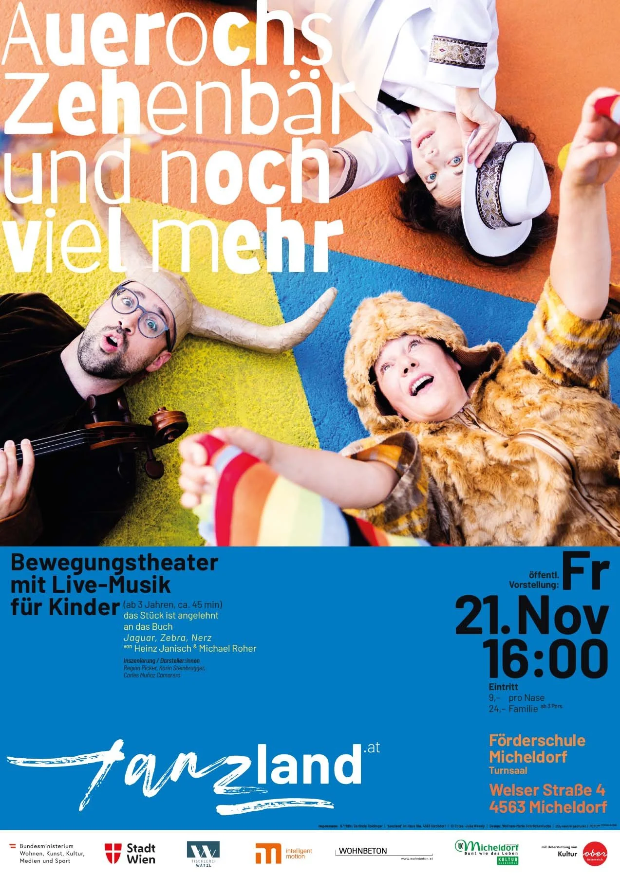 Micheldorf. Der Verein tanzland lädt in Kooperation mit dem Verein ART.ist zur Vorstellung von Auerochs Zehenbär und noch viel mehr ein. Das fantasievolle Stück ist für Kinder ab 3 Jahren konzipiert und beschäftigt sich auf altersgemäße Weise mit den Auswirkungen des menschengemachten Klimawandels. Regina Picker, Karin Steinbrugger und der Musiker Carles Muñoz Camarero nehmen das Publikum mit in die idyllische Welt des Zehenbärs. Auf der Wiese am kleinen See begegnen wir verschiedenen Tieren, bis eine Magierin anfängt, Dinge zu verändern. Der Zehenbär bemerkt, dass etwas nicht stimmt. Als auch nach und nach die Tiere verschwinden, will der Zehenbär die Magierin stoppen. Ob er das alleine schaffen kann?